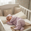 La composition de cet ensemble avec du satin en accessoire comprend une brassière, des chaussons, un bonnet et un pantalon