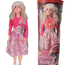 Elle porte une jupe, un chemisier, une veste, un chapeau, des chaussures en plastique, un collier et un sac à bandoulière.