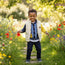 Le bas se compose d’un pantalon bleu marine, à la coupe droite avec ourlets légèrement retroussés, offrant un style à la fois élégant et décontracté. L’ensemble crée un look chic casual, parfait pour les sorties, l’école ou les occasions spéciales, tout en garantissant confort et liberté de mouvement à l’enfant.