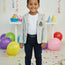 Ensemble trois pièces : veste, chemise et pantalon avec ceinture. Idéal pour les garçons de 1 à 4 ans.